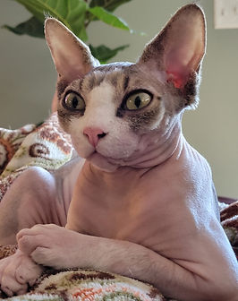 The Griffon & Sphynx are the breeds of our dog and cats, Brussels Griffon and Canadian Sphynx. As you may have noticed, the spellings are different than the mythical griffin creature and the Egyptian Sphinx.